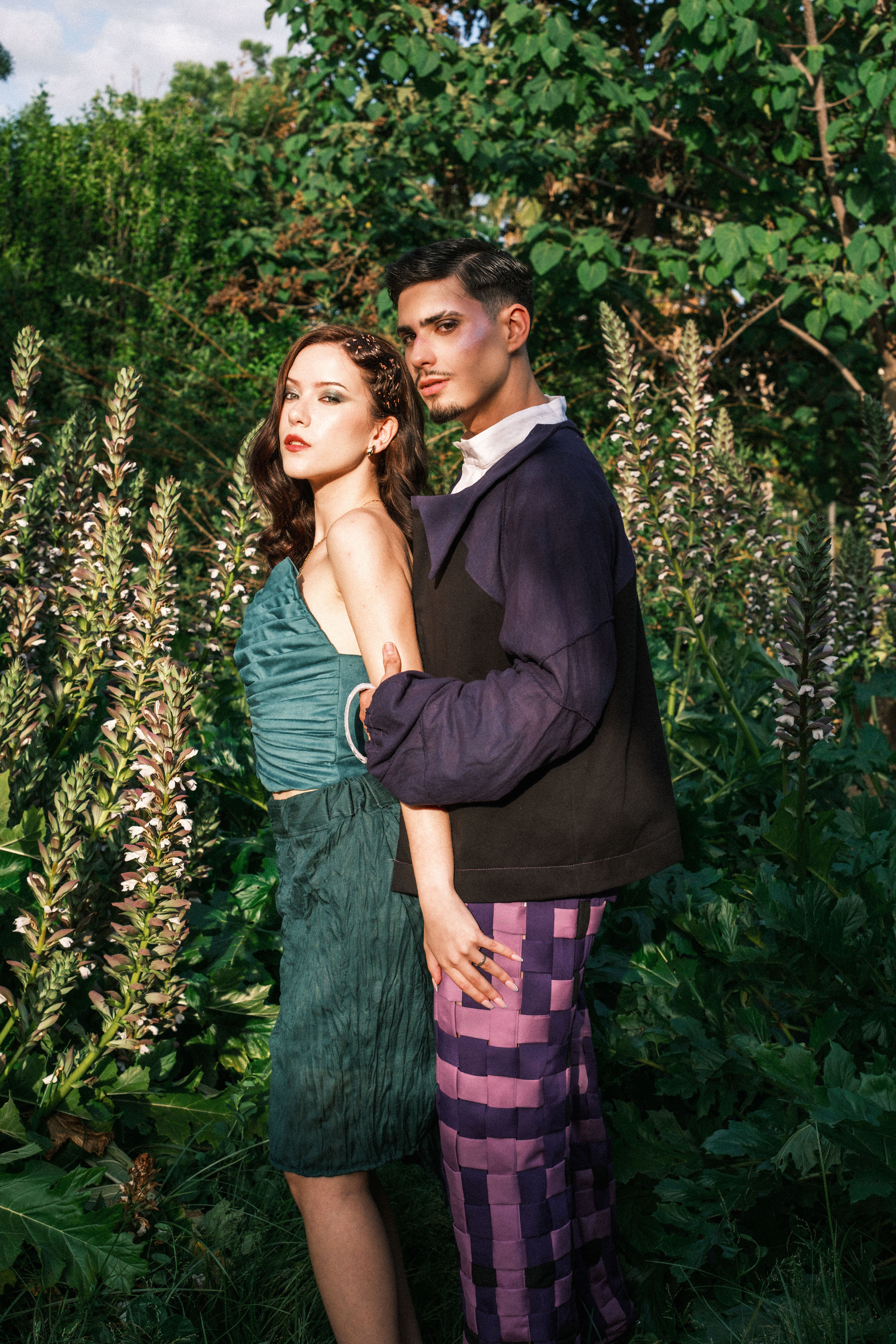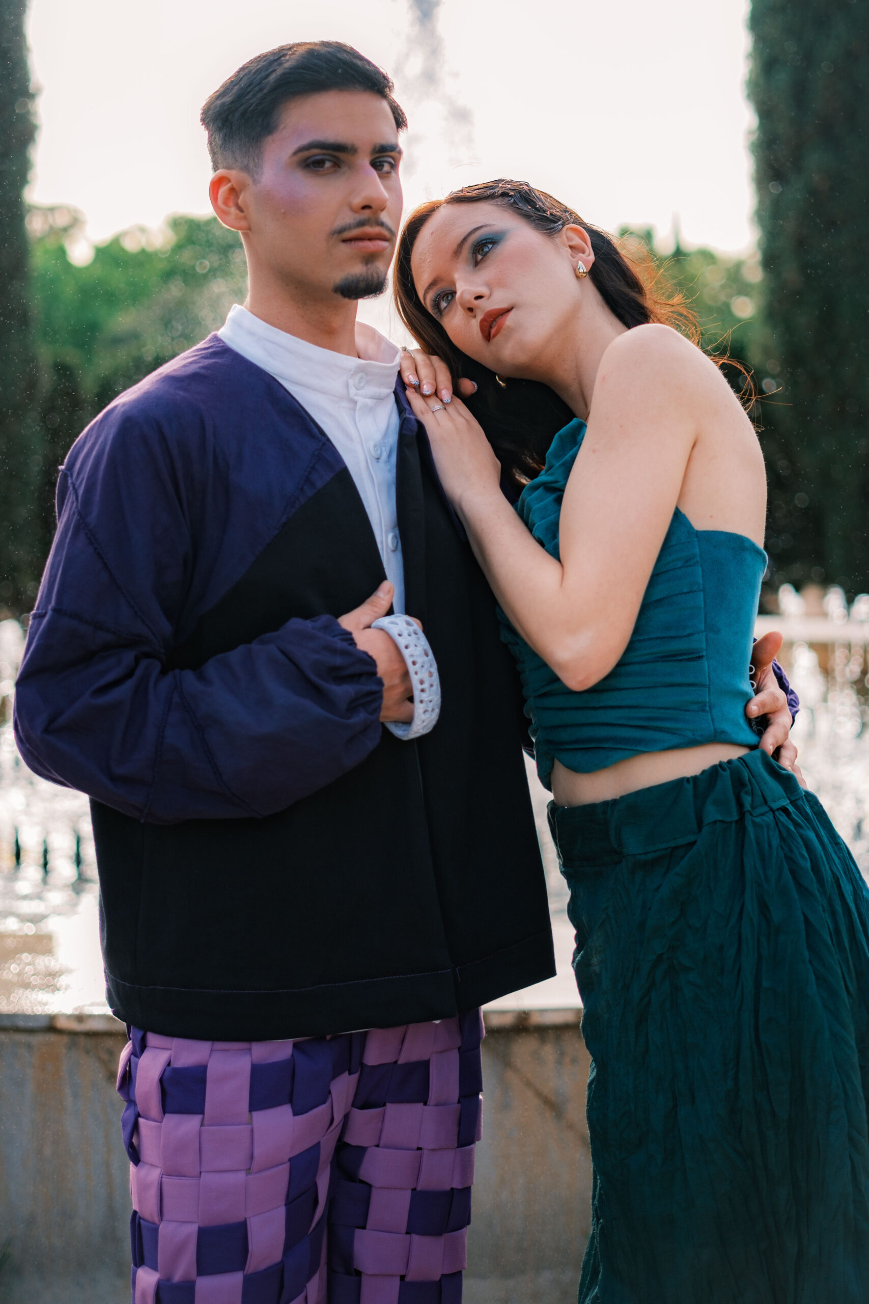 Debemos enfatizar el tratamiento de las telas y el resultado impecable que parece estar congelado en el tiempo. También observaremos algunos de los diseños más icónicos de Cristóbal Balenciaga. De estos tomaremos como ejemplo las siluetas escultóricas y los volúmenes exagerados pero sofisticados. Traducimos el concepto al plano material con estructuras de tela que rodean el cuerpo, dando un efecto de parálisis. En Sueño es vida introduciremos el tejido al estilo de cestería, manifestando los caminos que ofrece la vida. Por otro lado, se aceptan los pliegues modelados sobre el propio cuerpo, dando el mismo efecto.